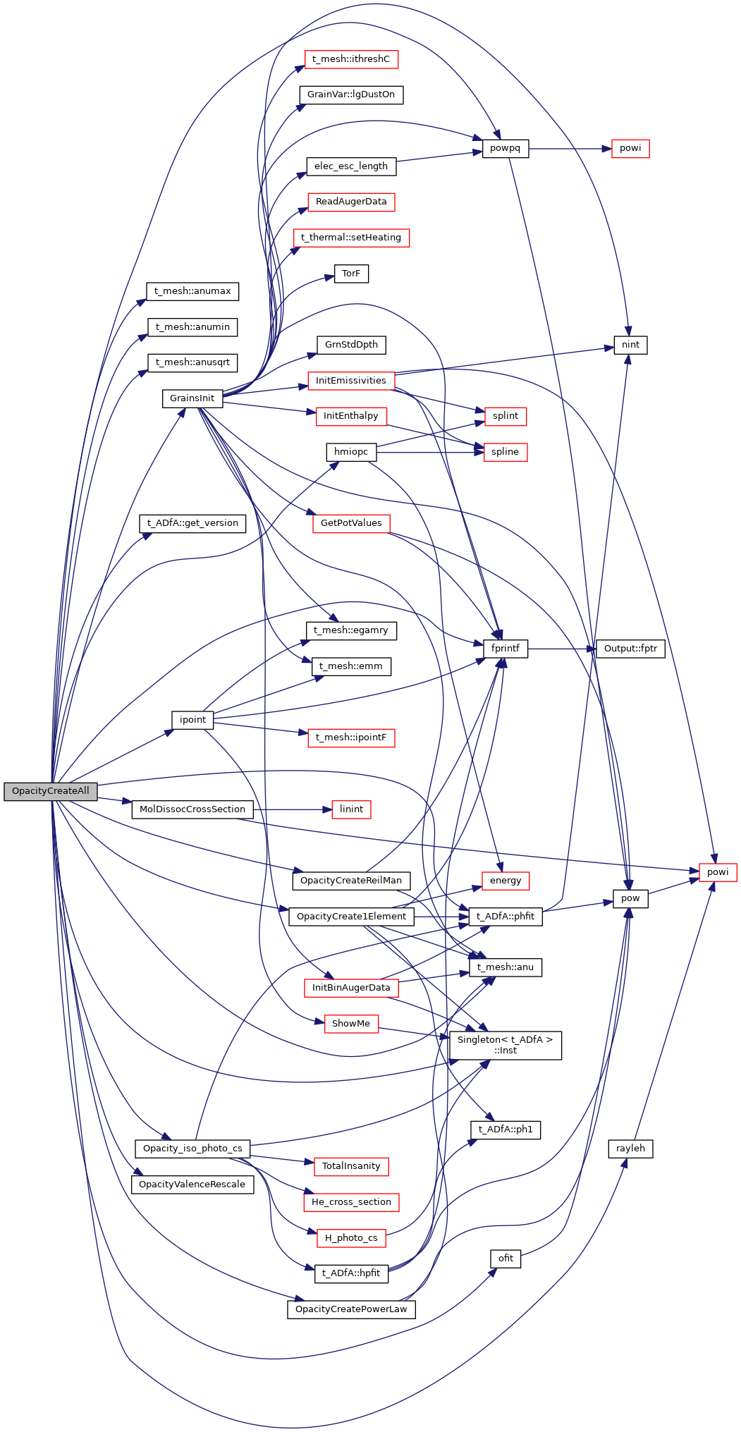 References t_mesh::anu(), t_mesh::anumax(), t_mesh::anumin(), t_mesh::anusqrt(), ASSERT, atmdat, cdEXIT, DEBUG_ENTRY, dense, diatoms, t_atmdat::EIonPot, EXIT_FAILURE, t_iso_sp::fb, fixit, fprintf(), t_ADfA::get_version(), GrainsInit(), t_iso_sp::HighestLevelOpacStack, hmi, hmiopc(), t_oxy::i2d, t_opac::ica2ex, t_opac::ica2op, t_opac::ih2pnt, t_opac::ih2pnt_ex, t_opac::ih2pof, t_opac::ih2pof_ex, t_opac::in1, Singleton< t_ADfA >::Inst(), t_opac::iopcom, t_opac::iophe1, t_opac::iopo2d, t_opac::ioppr, ioQQQ, t_opac::ipBrems, t_opac::ipCKshell, t_opac::ipElement, ipH1s, ipH_LIKE, ipHE_LIKE, ipHELIUM, t_hmi::iphmin, t_opac::iphmop, t_opac::iphmra, ipHYDROGEN, t_opac::ipmgex, t_opac::ipo1exc, t_opac::ipo3exc, t_opac::ipo3exc3, ipoint(), t_opac::ipOpMgEx, ipOXYGEN, ipPOTASSIUM, t_opac::ippr, t_opac::ipRayScat, iso_sp, t_opac::lgCompileOpac, t_dense::lgElmtOn, lgOpacAllocated, t_mole_global::lgStancil, t_trace::lgTrace, LIMELM, MIN2, MolDissocCrossSection(), mole_global, ndimOpacityStack, t_rfield::nflux, t_rfield::nflux_with_check, t_opac::nOpacTot, t_iso_sp::numLevels_max, ofit(), opac, t_opac::opacity_abs, Opacity_iso_photo_cs(), OpacityCreate1Element(), OpacityCreatePowerLaw(), OpacityCreateReilMan(), OpacityValenceRescale(), t_opac::OpacStack, oxy, t_ADfA::phfit(), PHFIT96, POW2, POW3, powpq(), rayleh(), rfield, and trace.