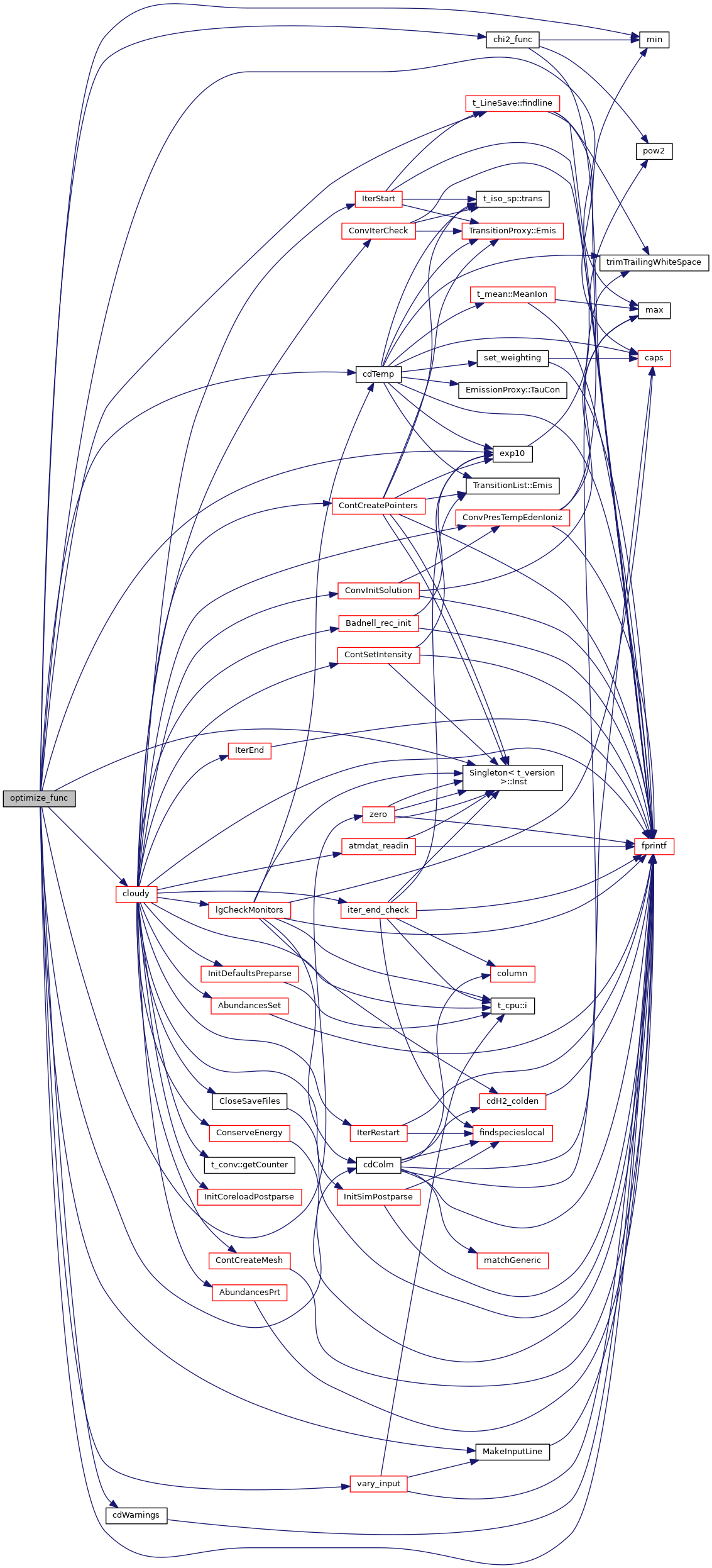 References ASSERT, BIG_CHI2, called, cdColm(), cdEXIT, cdTemp(), cdWarnings(), t_optimize::chColDen_label, chi2_func(), t_optimize::chOptRtn, t_optimize::chTempLab, t_optimize::chTempWeight, cloudy(), t_optimize::ColDen_error, t_optimize::ColDen_Obs, t_optimize::ContEner, t_optimize::ContIndex, t_optimize::ContNFnu, t_optimize::ContNFnuErr, t_radius::Conv2PrtInten, t_input::crd, DEBUG_ENTRY, t_radius::distance, EXIT_FAILURE, exp10(), t_LineSave::findline(), fprintf(), grid, input, Singleton< T >::Inst(), t_optimize::ion_ColDen, t_optimize::ionTemp, ioQQQ, t_LineSave::ipNormWavL, t_optimize::ipobs, t_optimize::lgDiamInCM, t_grid::lgGrid, t_optimize::lgOptDiam, t_optimize::lgOptimFlow, t_optimize::lgOptimize, t_optimize::lgOptLum, t_called::lgTalk, t_rfield::lgUSphON, t_optimize::lineids, t_LineSave::lines, LineSave, MakeInputLine(), max(), min(), t_optimize::nEmergent, t_optimize::nOptimiz, t_optimize::nOptLum, t_optimize::nvary, t_optimize::nvfpnt, t_optimize::optDiam, t_optimize::optDiamErr, t_optimize::optier, optimize, t_optimize::optint, radius, t_radius::Radius, rfield, t_rfield::rstrom, t_optimize::SavGenericData, t_LineSave::ScaleNormLine, SMALLFLOAT, t_optimize::temp_error, t_optimize::temp_obs, t_optimize::varang, t_optimize::varmax, t_optimize::varmin, vary_input(), t_optimize::vparm, t_optimize::xLineInt_error, t_optimize::xLineInt_Obs, and zero().