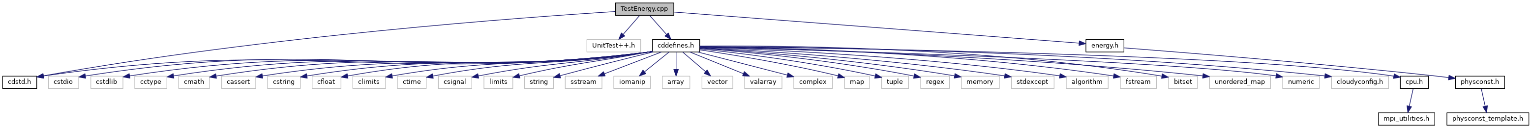 Include dependency graph for TestEnergy.cpp: