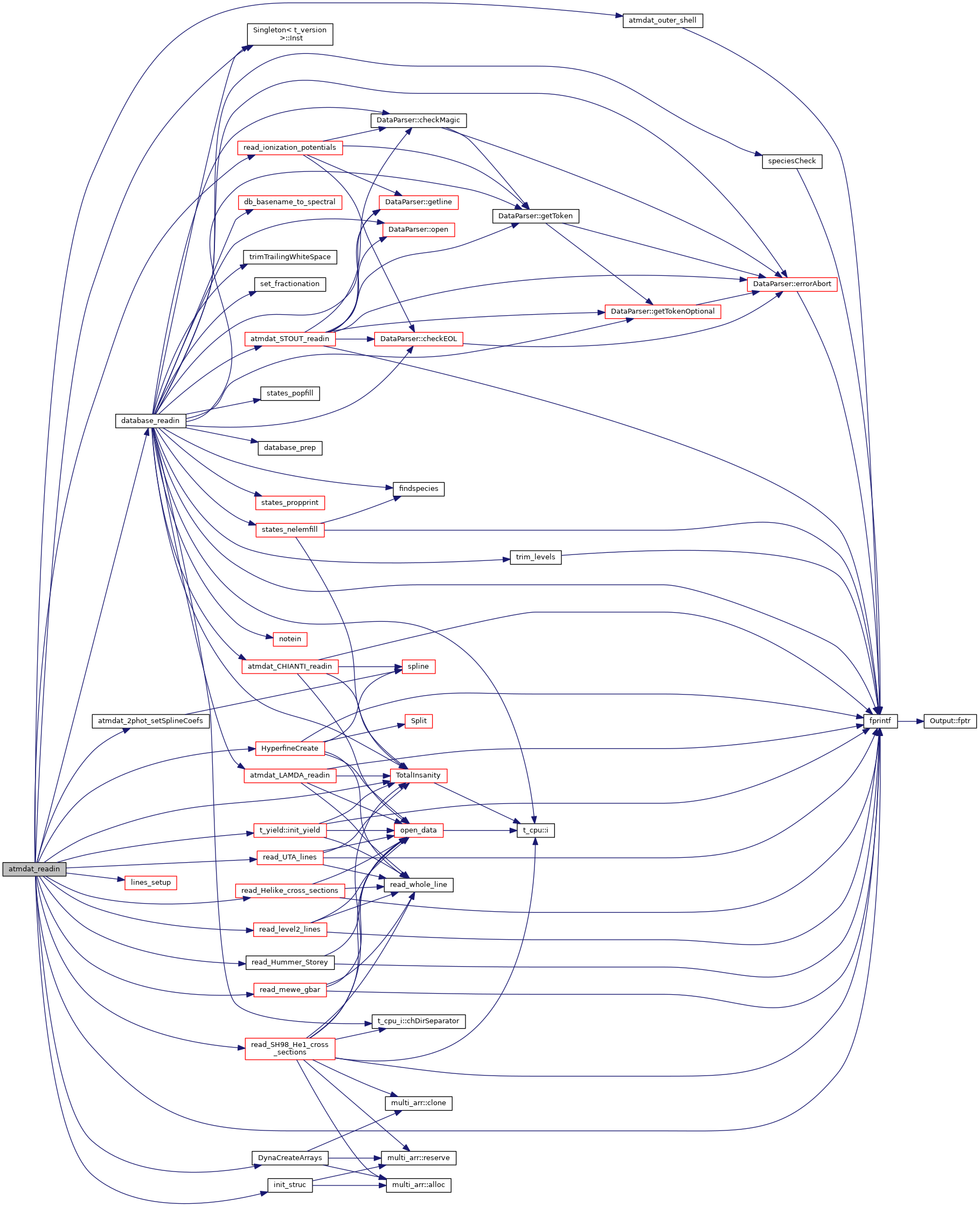 References ASSERT, atmdat, atmdat_2phot_setSplineCoefs(), atmdat_outer_shell(), cdEXIT, database_readin(), DEBUG_ENTRY, DynaCreateArrays(), EXIT_FAILURE, fprintf(), Heavy, HyperfineCreate(), init_struc(), t_yield::init_yield(), Singleton< t_yield >::Inst(), ioQQQ, t_iterations::iter_alloc, iterations, t_atmdat::lgChiantiLvl2Hybrid, t_atmdat::lgChiantiOn, t_atmdat::lgInnerShellLine_on, t_atmdat::lgLamdaOn, t_atmdat::lgStoutLvl2Hybrid, t_atmdat::lgStoutOn, LIMELM, lines_setup(), mole_global, t_iterations::nend, nSpecies, t_Heavy::nsShells, t_mole_global::num_total, nWindLine, t_struc::nzlim, read_Helike_cross_sections(), read_Hummer_Storey(), read_ionization_potentials(), read_level2_lines(), read_mewe_gbar(), read_SH98_He1_cross_sections(), read_UTA_lines(), struc, and TotalInsanity().