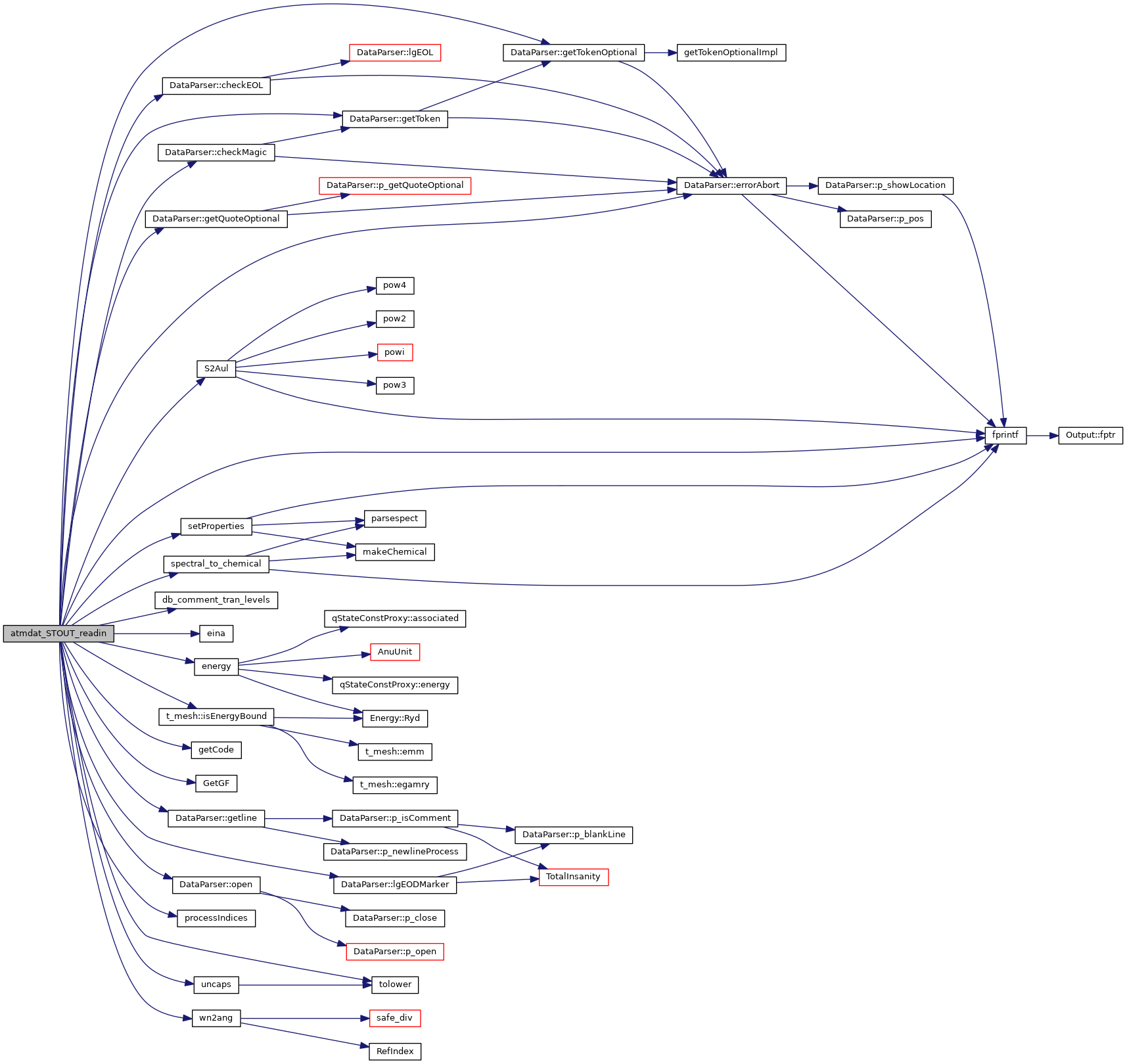 References ASSERT, atmdat, t_atmdat::aulThreshold, cdEXIT, CHARS_SPECIES, DataParser::checkEOL(), DataParser::checkMagic(), db_comment_tran_levels(), dBaseSpecies, dBaseStates, dBaseTrans, DEBUG_ENTRY, DEBUGSTATE, eina(), energy(), ENERGY_MIN_WN, DataParser::errorAbort(), ES_STARS_ONLY, EXIT_FAILURE, fprintf(), getCode(), GetGF(), DataParser::getline(), DataParser::getQuoteOptional(), DataParser::getToken(), DataParser::getTokenOptional(), ioQQQ, ipALPHA, ipATOM_H, ipATOM_HE, ipdBaseTrans, ipELECTRON, ipH2, ipH2_ORTHO, ipH2_PARA, ipHE_PLUS, ipNCOLLIDER, ipPROTON, t_mesh::isEnergyBound(), DataParser::lgEODMarker(), t_atmdat::lgStoutPrint, MAX2, MIN2, MIN3, t_atmdat::nStoutMaxLevels, t_atmdat::nStoutMaxLevelsFe, DataParser::open(), processIndices(), rfield, S2Aul(), setProperties(), spectral_to_chemical(), StoutCollData, tolower(), uncaps(), and wn2ang().
