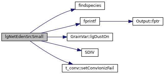 References conv, DEBUG_ENTRY, dense, t_dense::EdenTrue, t_ionbal::elecsnk, t_ionbal::elecsrc, findspecies(), fixit, fprintf(), GrainVar::GrainChTrRate, gv, molecule::index, ionbal, ioQQQ, GrainVar::lgDustOn(), t_dense::lgElmtOn, t_conv::lgSearch, LIMELM, mole, nzone, SDIV(), t_conv::setConvIonizFail(), t_mole_local::species, and t_dense::xIonDense.