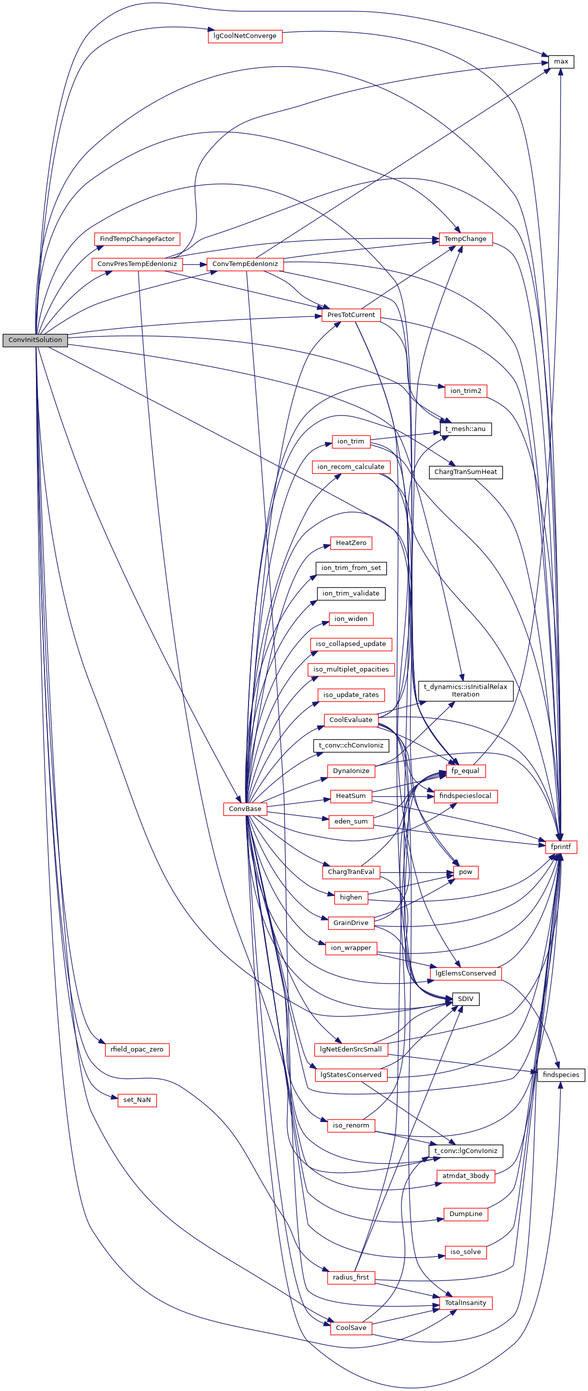 References t_mesh::anu(), ASSERT, t_conv::AverEdenError, t_conv::AverHeatCoolError, t_conv::AverPressError, t_conv::BigEdenError, t_conv::BigHeatCoolError, t_conv::BigPressError, t_dense::chDenseLaw, t_thermal::ConstTemp, conv, ConvBase(), ConvPresTempEdenIoniz(), ConvTempEdenIoniz(), CoolSave(), t_struc::coolstr, t_thermal::ctot, dCoolNetDTOld, DEBUG_ENTRY, t_struc::DenMass, t_struc::DenParticles, dense, t_radius::drad, t_struc::drad, t_radius::drad_mid_zone, t_struc::drad_x_fillfac, t_radius::drad_x_fillfac, t_radius::dVeffAper, dynamics, t_dense::eden, t_struc::ednstr, t_geometry::FillFac, FindTempChangeFactor(), fp_equal(), fprintf(), FracMoleMax, t_dense::gas_phase, geometry, t_struc::hden, t_struc::heatstr, Heavy, t_struc::hiistr, t_conv::hist_pres_nzone, t_conv::hist_temp_nzone, t_struc::histr, t_thermal::htot, ioQQQ, t_Heavy::ipHeavy, ipHYDROGEN, ipOXYGEN, t_dynamics::isInitialRelaxIteration(), iteration, lgCoolNetConverge(), t_dense::lgDenseInitConstant, t_dense::lgEdenBad, t_conv::lgFirstSweepThisZone, t_conv::lgLastSweepThisZone, t_mole_global::lgNoMole, t_conv::lgOscilOTS, t_pressure::lgPressureInitialSpecified, t_dense::lgPressureVaryTime, t_radius::lgSdrmaxRel, t_conv::lgSearch, t_thermal::lgTeHigh, t_thermal::lgTemperatureConstant, t_dynamics::lgTimeDependentStatic, t_trace::lgTrace, LIMELM, max(), MAX2, MIN2, mole_global, t_rfield::nflux, t_rfield::nPositive, t_conv::nPres2Ioniz, t_conv::nTotalIoniz, t_conv::nTotalIoniz_start, t_trace::nTrConvg, t_dense::nzEdenBad, t_struc::o3str, OxyInGrains, t_dense::pden, phycon, pow(), pressure, t_pressure::PressureInitialSpecified, t_dense::PressureVaryTimeIndex, t_dense::PressureVaryTimeTimescale, PresTotCurrent(), t_pressure::PresTotlCurr, t_pressure::PresTotlInit, radius, t_radius::Radius, radius_first(), rfield, rfield_opac_zero(), SDIV(), t_radius::sdrmax, t_radius::sdrmin, set_NaN(), SMALLDOUBLE, SMALLFLOAT, StopCalc, struc, t_phycon::te, t_StopCalc::TeFloor, t_phycon::TEMP_LIMIT_HIGH, t_phycon::TEMP_LIMIT_LOW, TempChange(), t_phycon::TEnerDen, t_struc::testr, thermal, t_dynamics::time_elapsed, TotalInsanity(), trace, t_struc::volstr, t_dense::xIonDense, and t_dense::xMassDensity.