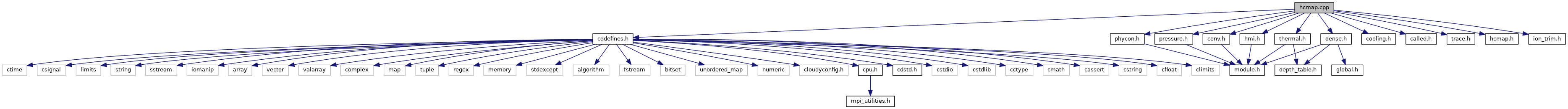 References called, cdEXIT, t_thermal::chClntLab, t_hcmap::cmap, t_thermal::collam, conv, ConvEdenIoniz(), t_thermal::cooling, coolpr(), t_thermal::ctot, t_thermal::dCooldT, DEBUG_ENTRY, dense, t_thermal::dHeatdT, t_dense::eden, EPS, EXIT_FAILURE, exp10(), fprintf(), t_dense::gas_phase, t_hmi::H2_total, t_thermal::heating(), t_thermal::heatnt, t_hcmap::hmap, hmi, t_thermal::htot, ion_trim_invalidate(), ion_trim_untrim(), ioQQQ, ipHELIUM, ipHYDROGEN, t_thermal::lgCNegChk, t_dense::lgElmtOn, t_hcmap::lgMapDone, t_hcmap::lgMapOK, t_conv::lgSearch, t_called::lgTalk, t_thermal::lgTeHigh, t_trace::lgTrace, LIMELM, MAX2, MIN2, t_thermal::ncltot, NCOLNT_LAB_LEN, t_hcmap::nmap, t_hcmap::nMapAlloc, t_hcmap::nMapStep, t_conv::nTotalIoniz, t_trace::nTrConvg, nzone, phycon, PresTotCurrent(), PrintEfmt, t_hcmap::RangeMap, t_phycon::te, t_hcmap::temap, t_phycon::TEMP_LIMIT_HIGH, t_phycon::TEMP_LIMIT_LOW, TempChange(), thermal, trace, and t_dense::xIonDense.