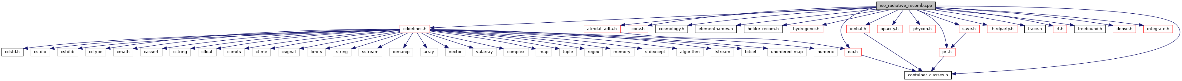 References ASSERT, cdEXIT, t_elementnames::chElementSym, t_isoCTRL::chISO, conv, cosmology, DEBUG_ENTRY, dense, t_ionbal::DR_Badnell_rate_coef, t_ionbal::DR_Badnell_suppress_fact, t_dense::eden, elementnames, EXIT_FAILURE, t_iso_sp::fb, fp_equal(), fprintf(), t_ADfA::H_rad_rec(), t_iso_sp::HighestLevelOpacStack, Singleton< t_ADfA >::Inst(), ionbal, ioQQQ, t_save::ioRecom, ipH1s, ipHE_LIKE, ipHELIUM, t_trace::ipIsoTrace, IPRAD, ipRecEsc, ipRecNetEsc, ipRecRad, iso_ctrl, iso_dielec_recomb_rate(), iso_put_error(), iso_put_recomb_error(), iso_radrecomb_from_cross_section(), iso_RRCoef_Te(), iso_sp, t_opac::lgCaseB, t_isoCTRL::lgDielRecom, t_cosmology::lgDo, t_trace::lgHBug, t_trace::lgHeBug, t_save::lgioRecom, t_trace::lgIsoTraceFull, t_iso_sp::lgLevelsLowered, t_iso_sp::lgMustReeval, t_isoCTRL::lgNoRecombInterp, t_isoCTRL::lgRandErrGen, t_isoCTRL::lgTopoff, t_trace::lgTrace, LIMELM, MAX2, MIN2, N_, t_iso_sp::n_HighestResolved_local, t_iso_sp::nCollapsed_local, t_iso_sp::nCollapsed_max, NHYDRO_MAX_LEVEL, NISO, t_conv::nTotalIoniz, t_iso_sp::numLevels_local, t_iso_sp::numLevels_max, opac, t_opac::OpacStack, phycon, PrintEfmt, t_iso_sp::RadRec_caseB, t_iso_sp::RadRec_effec, Recomb_Seaton59(), RT_recom_effic(), save, ShowMe(), SumUpToThisN, t_opac::TauAbsGeo, t_phycon::te, and trace.