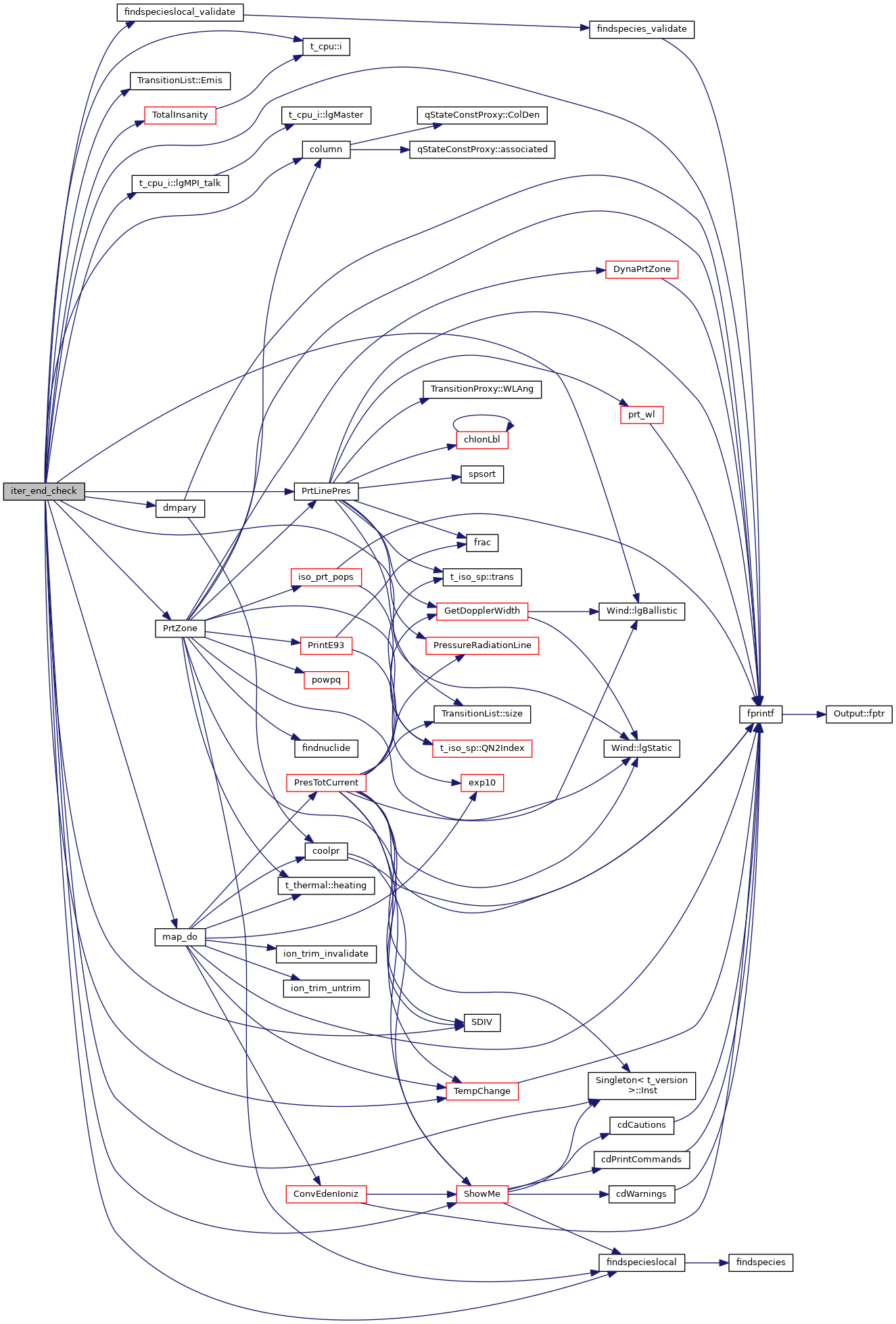 References ASSERT, t_StopCalc::AV_extended, t_StopCalc::AV_point, BIGFLOAT, called, cdEXIT, t_dense::chDenseLaw, t_StopCalc::chReasonStop, t_StopCalc::chSpeciesColumn, t_StopCalc::col_H0_ov_Tspin, t_StopCalc::col_h2, t_StopCalc::col_h2_nut, t_StopCalc::col_monoxco, t_StopCalc::col_species, colden, t_colden::colden, t_StopCalc::colnut, t_StopCalc::colpls, column(), molezone::column, t_thermal::ConstTemp, t_StopCalc::ContIndex, t_StopCalc::ContNFnu, conv, t_radius::Conv2PrtInten, cpu, DEBUG_ENTRY, dense, t_radius::depth, dmpary(), t_radius::drad_x_fillfac, t_radius::drNext, t_dense::eden, t_dense::EdenTrue, TransitionList::Emis(), EPS, EXIT_FAILURE, t_rfield::extin_mag_V_extended, t_rfield::extin_mag_V_point, findspecieslocal(), findspecieslocal_validate(), fprintf(), t_dense::gas_phase, geometry, t_colden::H0_ov_Tspin, t_hmi::H2_total, hcmap, t_StopCalc::HColStop, HFLines, hmi, t_cpu::i(), Singleton< T >::Inst(), ioMAP, ioQQQ, ipCOL_HTOT, ipHYDROGEN, ipOXYGEN, t_StopCalc::ipStopLin1, t_StopCalc::ipStopLin2, t_StopCalc::iptnu, iteration, iterations, t_iterations::itermx, t_conv::lgBadStop, Wind::lgBallistic(), t_radius::lgdR2Small, t_radius::lgDrMinUsed, t_dense::lgElmtOn, t_iterations::lgLastIt, t_hcmap::lgMapBeingDone, t_hcmap::lgMapDone, t_cpu_i::lgMPI_talk(), t_prt::lgOnlyZone, t_pressure::lgPres_radiation_ON, t_prt::lgPrtStart, t_pressure::lgRadPresAbortOK, t_conv::lgSearch, t_pressure::lgSonicPoint, t_pressure::lgSonicPointAbortOK, Wind::lgStatic(), t_StopCalc::lgStop21cm, t_StopCalc::lgStopSpeciesColumn, t_called::lgTalk, t_thermal::lgTemperatureConstant, t_trace::lgTrace, t_trace::lgTrOvrd, Wind::lgVelPos, t_geometry::lgZoneTrp, t_LineSave::lines, LineSave, t_mole_global::list, map_do(), t_hcmap::MapZone, MAX2, mole, mole_global, nCHREASONSTOP, t_StopCalc::nEmergent, t_iterations::nend, t_geometry::nprint, t_trace::npsbug, t_prt::nstart, t_StopCalc::nstpl, t_trace::nTrConvg, NULL, t_mole_global::num_calc, t_prt::nzdump, t_trace::nznbug, nzone, opac, t_pressure::pbeta, phycon, pressure, prt, PrtLinePres(), PrtZone(), t_radius::r1r0sq, radius, rfield, t_radius::rinner, SDIV(), ShowMe(), SMALLFLOAT, t_mole_local::species, StopCalc, t_StopCalc::StopDepleteFrac, t_StopCalc::StopElecDensity, t_StopCalc::StopElecFrac, t_StopCalc::StopH2MoleFrac, t_StopCalc::StopHPlusFrac, t_iterations::StopThickness, t_StopCalc::StopVelocity, t_StopCalc::stpint, t_opac::TauAbsGeo, t_StopCalc::tauend, t_phycon::te, t_StopCalc::TeFloor, TempChange(), t_StopCalc::TempHiStopZone, t_StopCalc::TempLoStopZone, thermal, TotalInsanity(), trace, wind, Wind::windv, t_dense::xIonDense, t_StopCalc::xMass, and t_dense::xMassTotal.