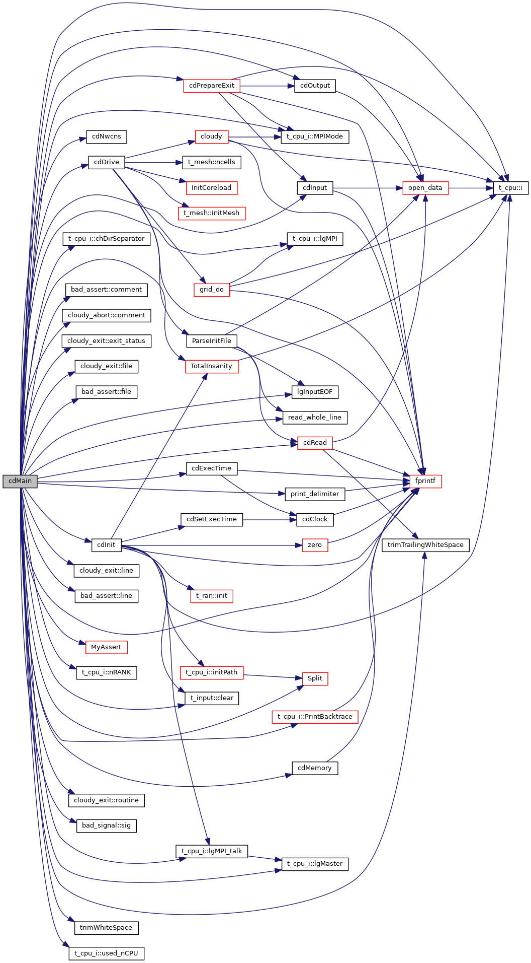 main: this is a wrapper around cdMain. It takes care of the MPI stuff for non-MPI runs, this should do nothing more than call cdMain and exit.
