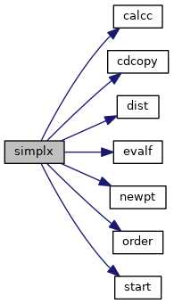 | STATIC void | simplx (long int n, realnum step[], long int ns, long int ips[], long int maxnfe, int cmode, realnum x[], realnum *fx, long int *nfe, realnum *s, realnum fs[], long int *iflag) |