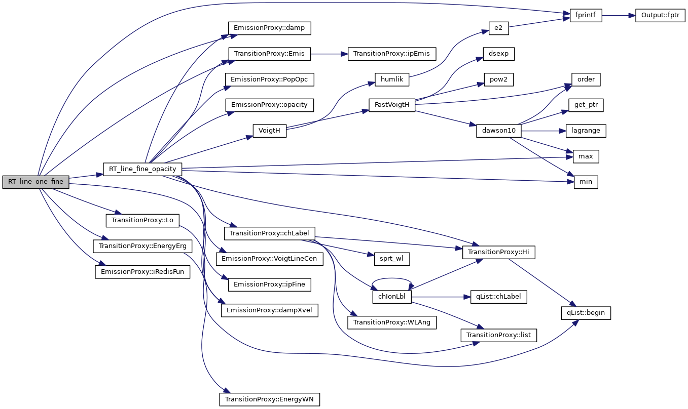 References t_mesh::anu(), t_mesh::anu2(), ASSERT, atmdat, atmdat_outer_shell(), EmissionProxy::Aul(), t_radius::BeamInOut, t_radius::BeamOutOut, t_gaunt::brems_rt(), t_gaunt::brems_sum_ions(), CalcTwoPhotonEmission(), t_rfield::ConEmitLocal, t_rfield::ConInterOut, t_rfield::ConSourceFcnLocal, t_rfield::ContBoltz, t_rfield::convoc, CoolHeavy, dBaseSpecies, dBaseTrans, DEBUG_ENTRY, t_brems_den::den_Hep, t_brems_den::den_Hepp, t_brems_den::den_Hm, t_brems_den::den_Hp, t_brems_den::den_ion, dense, diatoms, t_rfield::DiffuseEscape, t_rfield::DiffuseLineEmission, DumpLine(), t_radius::dVolOutwrd, t_dense::eden, t_rfield::eeBremsDif, t_atmdat::EIonPot, emergent_line(), TransitionProxy::Emis(), TransitionList::Emis(), TransitionProxy::EnergyErg(), t_opac::ExpmTau, t_rfield::flux, t_rfield::flux_beam_const, t_rfield::flux_beam_time, t_rfield::flux_isotropic, fprintf(), GrainVar::GrainEmission, GrainMakeDiffuse(), gv, Heavy, HFLines, hmi, Singleton< t_gaunt >::Inst(), t_dense::IonHigh, t_dense::IonLow, ioQQQ, t_Heavy::ipBalHeavy, TransitionProxy::ipCont(), t_opac::ipElement, ipH_LIKE, ipHE_LIKE, t_Heavy::ipHeavy, ipHELIUM, t_hmi::iphmin, t_opac::iphmop, ipHYDROGEN, t_Heavy::ipLyHeavy, t_rfield::ipMaxBolt, ipoint(), t_rfield::ipPlasma, ipSatelliteLines, iso_ctrl, iso_sp, t_isoCTRL::lgDielRecom, GrainVar::lgDustOn(), t_dense::lgElmtOn, t_CoolHeavy::lgFreeOn, GrainVar::lgGrainPhysicsOn, t_isoCTRL::lgInd2nu_On, t_rfield::lgInducProcess, t_rfield::lgKillOutCont, t_rfield::lgKillOutLine, t_trace::lgTrace, LIMELM, MAX2, MIN2, t_rfield::nflux, t_rfield::nflux_with_check, NISO, nSpecies, t_Heavy::nsShells, t_iso_sp::numLevels_local, nWindLine, nzone, t_rfield::OccNumbDiffCont, opac, t_opac::opacity_abs, t_opac::OpacStack, t_rfield::otscon, t_rfield::otslin, t_rfield::outlin, t_rfield::outlin_noplot, TransitionProxy::outline(), EmissionProxy::Pesc_total(), phots(), phycon, pow2(), PrtTwoPhotonEmissCoef(), radius, t_Heavy::RadRecCon, t_rfield::reflin, rfield, RT_iso_integrate_RRC(), safe_div(), SatelliteLines, SEXP_LIMIT, TransitionList::size(), SMALLFLOAT, t_phycon::sqrte, t_iso_sp::st, TauLine2, t_phycon::te, t_opac::tmn, t_rfield::TotDiff2Pht, trace, t_iso_sp::trans(), t_iso_sp::TwoNu, vzero(), t_mesh::widflx(), EmissionProxy::xIntensity(), t_dense::xIonDense, and t_Heavy::xLyaHeavy.