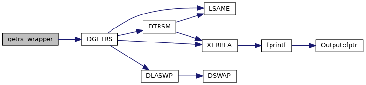 | void | getrs_wrapper (char trans, long N, long nrhs, double *A, long lda, int32 *ipiv, double *B, long ldb, int32 *info) |