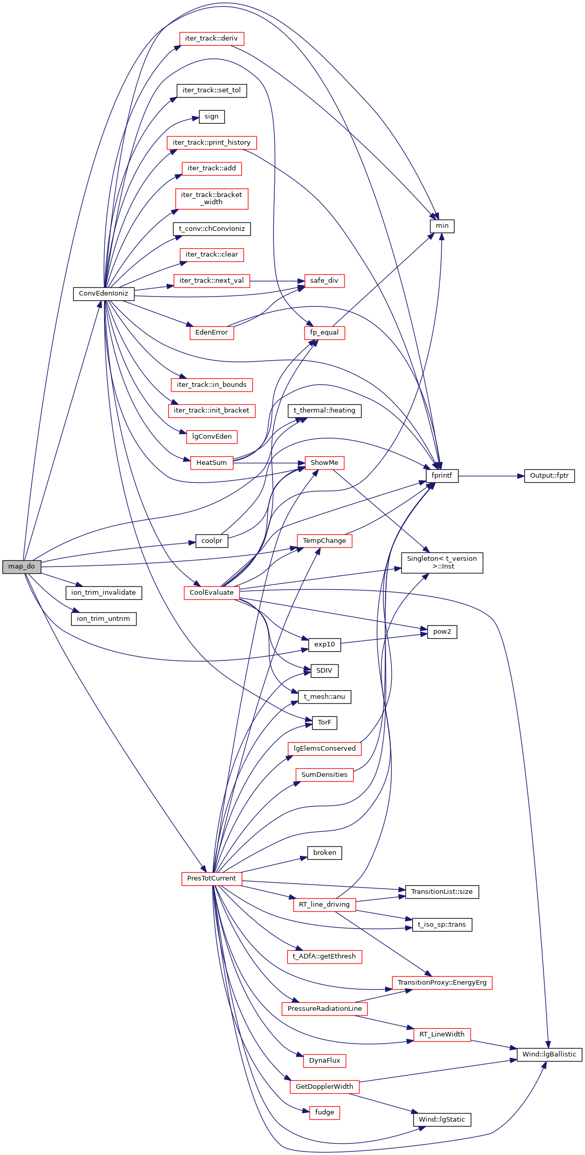 References called, cdEXIT, t_thermal::chClntLab, t_hcmap::cmap, t_thermal::collam, conv, ConvEdenIoniz(), t_thermal::cooling, coolpr(), t_thermal::ctot, t_thermal::dCooldT, DEBUG_ENTRY, dense, t_thermal::dHeatdT, t_dense::eden, EPS, EXIT_FAILURE, exp10(), fprintf(), t_dense::gas_phase, t_hmi::H2_total, t_thermal::heating(), t_thermal::heatnt, t_hcmap::hmap, hmi, t_thermal::htot, ion_trim_invalidate(), ion_trim_untrim(), ioQQQ, ipHELIUM, ipHYDROGEN, t_thermal::lgCNegChk, t_dense::lgElmtOn, t_hcmap::lgMapDone, t_hcmap::lgMapOK, t_conv::lgSearch, t_called::lgTalk, t_thermal::lgTeHigh, t_trace::lgTrace, LIMELM, MAX2, MIN2, t_thermal::ncltot, NCOLNT_LAB_LEN, t_hcmap::nmap, t_hcmap::nMapAlloc, t_hcmap::nMapStep, t_conv::nTotalIoniz, t_trace::nTrConvg, nzone, phycon, PresTotCurrent(), PrintEfmt, t_hcmap::RangeMap, t_phycon::te, t_hcmap::temap, t_phycon::TEMP_LIMIT_HIGH, t_phycon::TEMP_LIMIT_LOW, TempChange(), thermal, trace, and t_dense::xIonDense.